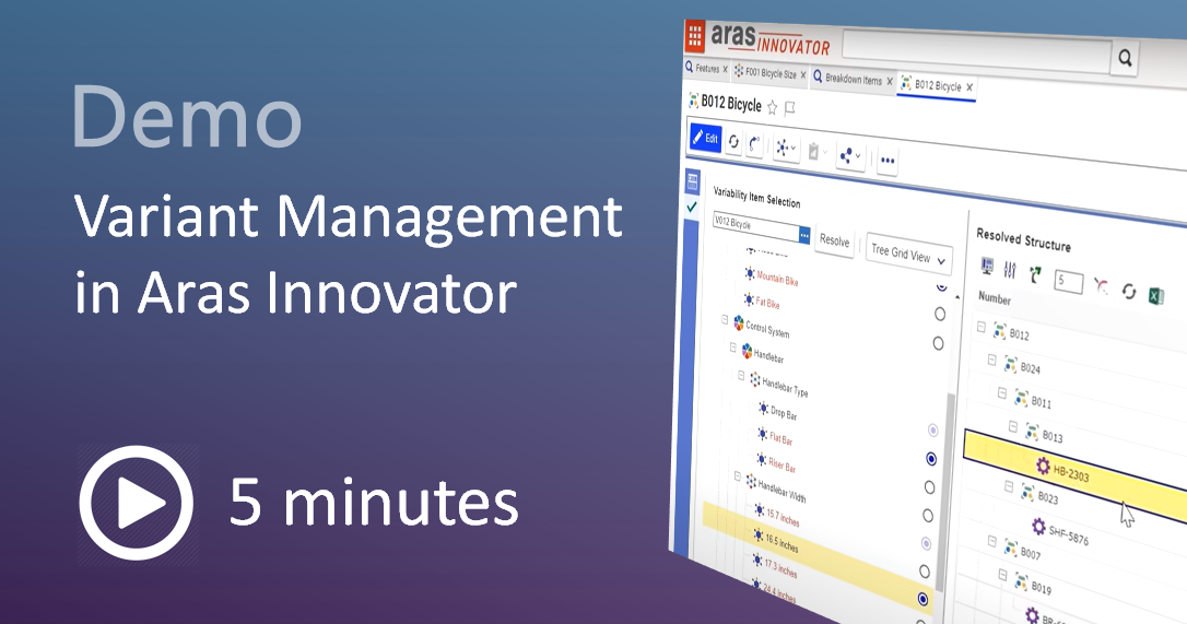 /The Aras Innovator sample application, Variant Management, helps companies who need to design for product platforms with modular architectures. Handling different product variants is a complex task requiring careful organization of which options and combinations can work together. Try it out today in our Variant Management sample application available on github (https://github.com/ArasLabs/vm-sample...).